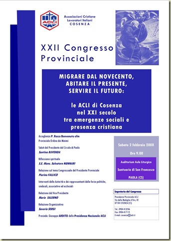 XXII Congresso Provinciale delle ACLI: 2 Febbraio 2008 - Paola (CS)