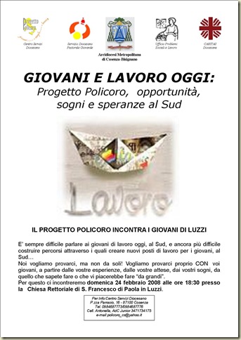 Incontro del Progetto Policoro a Luzzi
