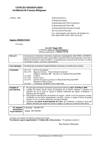 contatta il Servizio Diocesano di Pastorale Giovanile" email pgcosenza@gmail.com __________________________