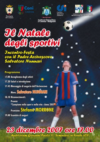 Vi invito a partecipare in massa al "Natale degli Sportivi 2007", soprattutto di "portare" i ragazzi degli oratori, delle parrocchie e delle società sportive.